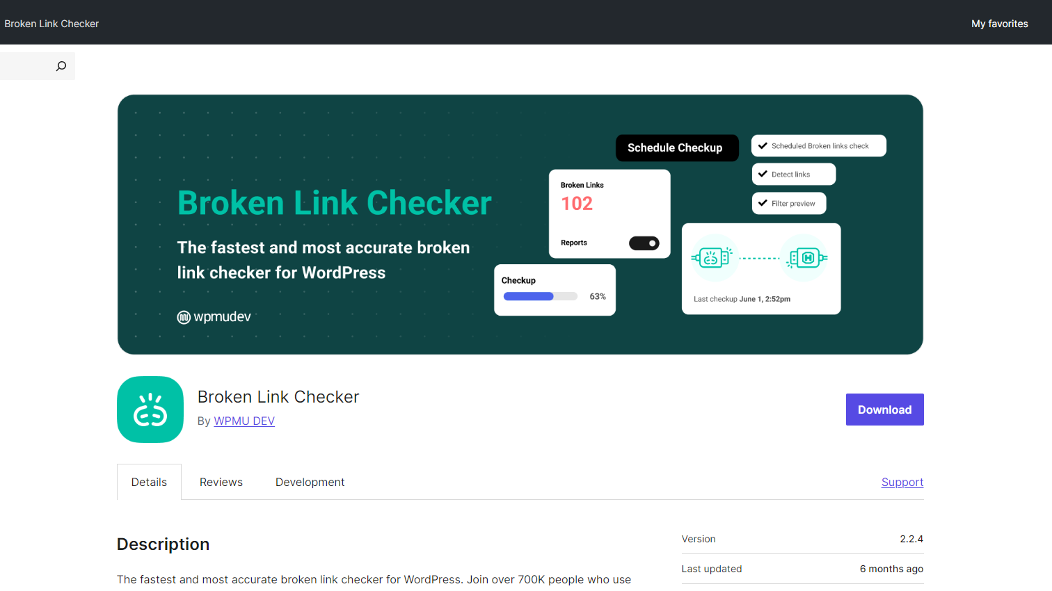Broken Link Checker is an essential plugin that does exactly what its name suggests—it checks for broken links.