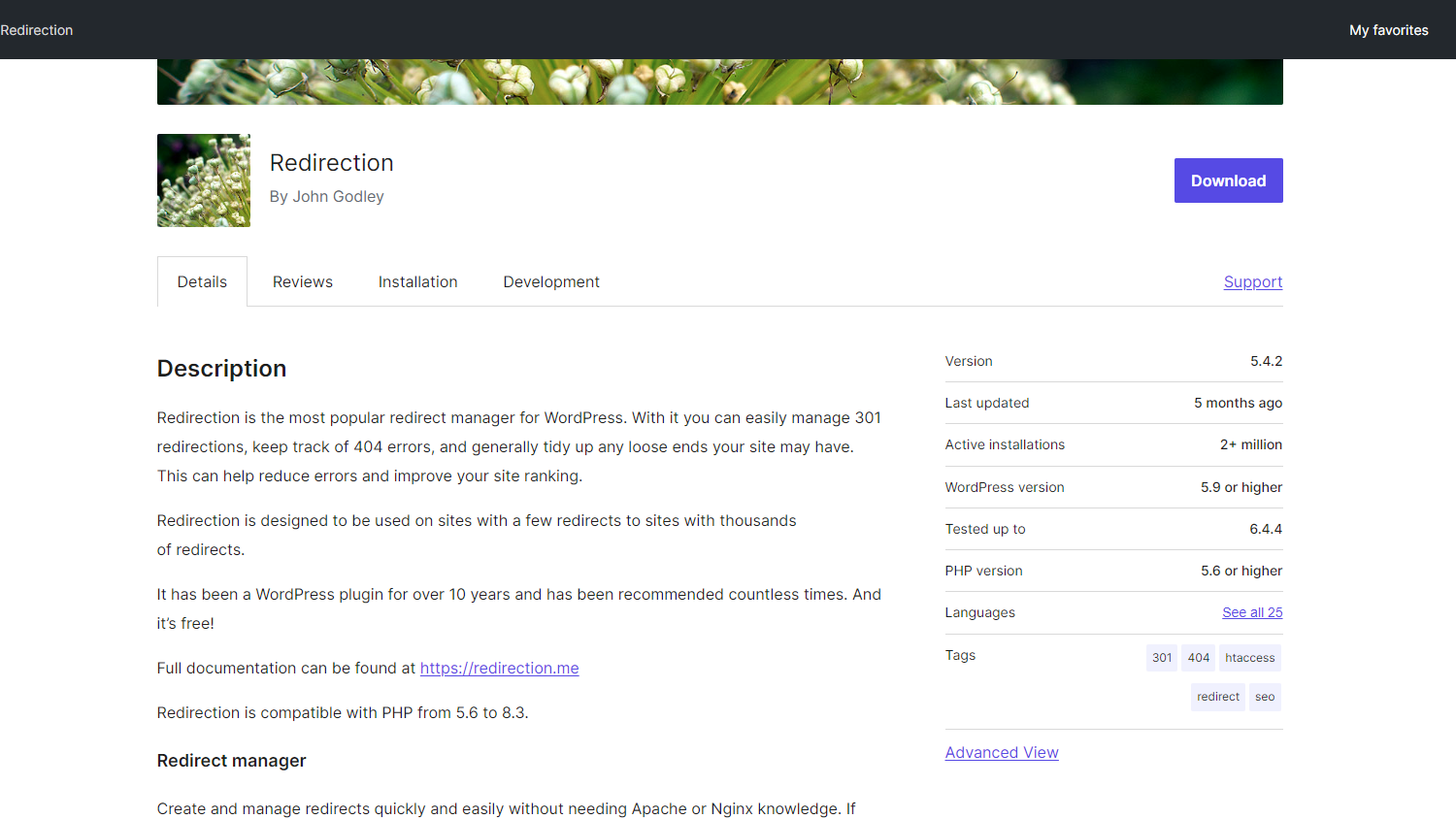 Redirection is a plugin that helps you manage 301 redirects and track 404 errors.